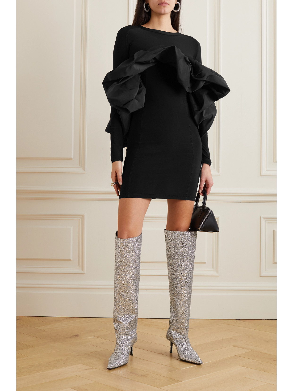 Sequined mesh mini dress